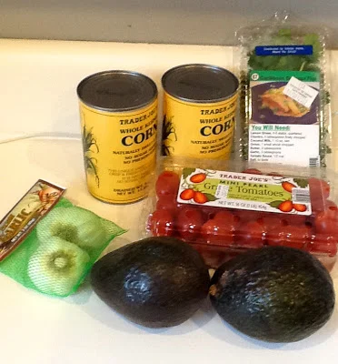 As promised, this idea came from one of my recent pins to my Pinterest "Grub" board. This salad doesn't really have a name other than its descriptors: corn, avocado and tomato salad with honey lime dressing. This was so simple and light, perfect for a hot summer evening. (The hubs approved.)